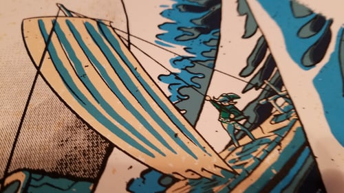 Part of the ReNESsance Series, which mashes up classic paintings and classic video games. Inspired by Link's Awakening. 18x24 5 color screenprint. This is the second edition of this print and is an open edition.
